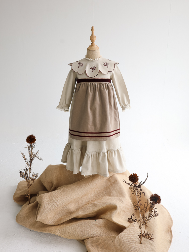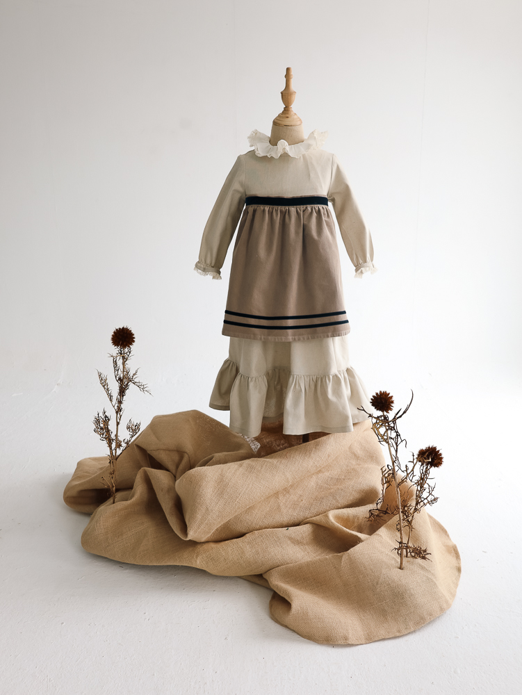 02 VESTIDO LARGO DELANTAL coton tostado m/l rematado en puntillita