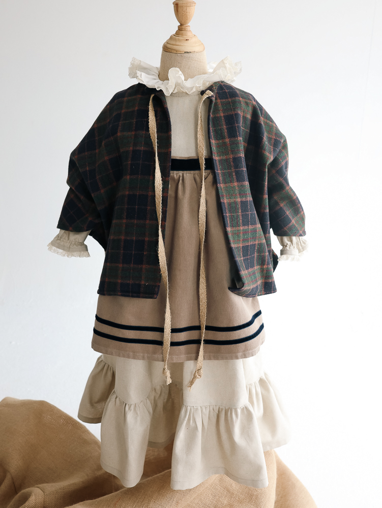 04 ABRIGO ABIGAIL escocés abierto con cintas de saco